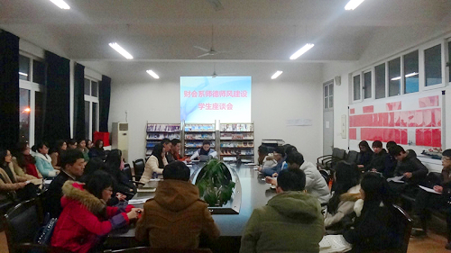 加强师德师风建设一直是财会系的重点工作,得到了全系师生的高度重视。为了有效推进新学期师德师风建设,财会系党总支于2月18日晚18:00在崇学楼304召开了由32名学生代表参加的师德师风建设学生座谈会,系党总支书记谢肖力、学工办主任马德龙、辅导员相丹红出席了座谈会。