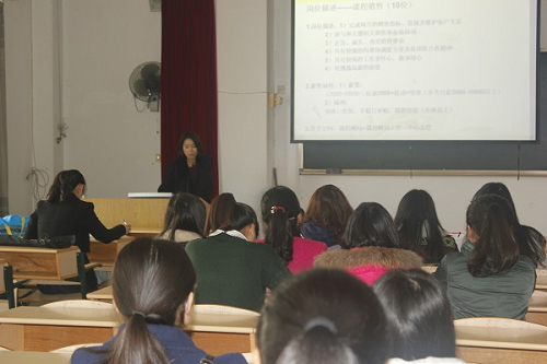 2月26日下午13点,人文传播系马年第一场一对一宣讲会正式召开。参加此次宣讲会的有温州电信龙湾分公司负责人郑先生,天才宝贝教育培训中心负责人倪老师,以及人文传播系辅导员林文龙老师。2家企业带着中文指导师、英文指导师、市场专员、课程销售、前台行政、客户经理、话务员等30多个职位前来招聘。