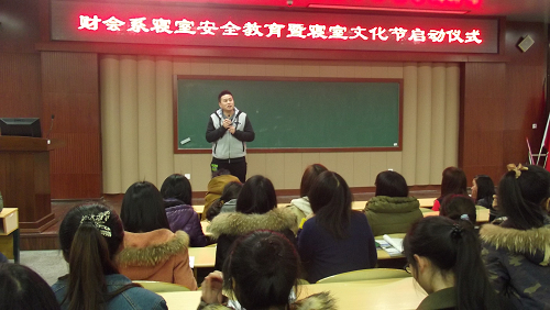为了更好的创建安全、文明、卫生、和谐的寝室环境,增强广大学生的安全和文明意识,3月3日18:00,财会系在崇学楼101教室举行了“宜居、宜乐、宜学”寝室文化节的启动仪式。学生处公寓管理科科长徐贤明、财会系学工办主任马德龙、辅导员程红波和全体寝室长参加了活动。