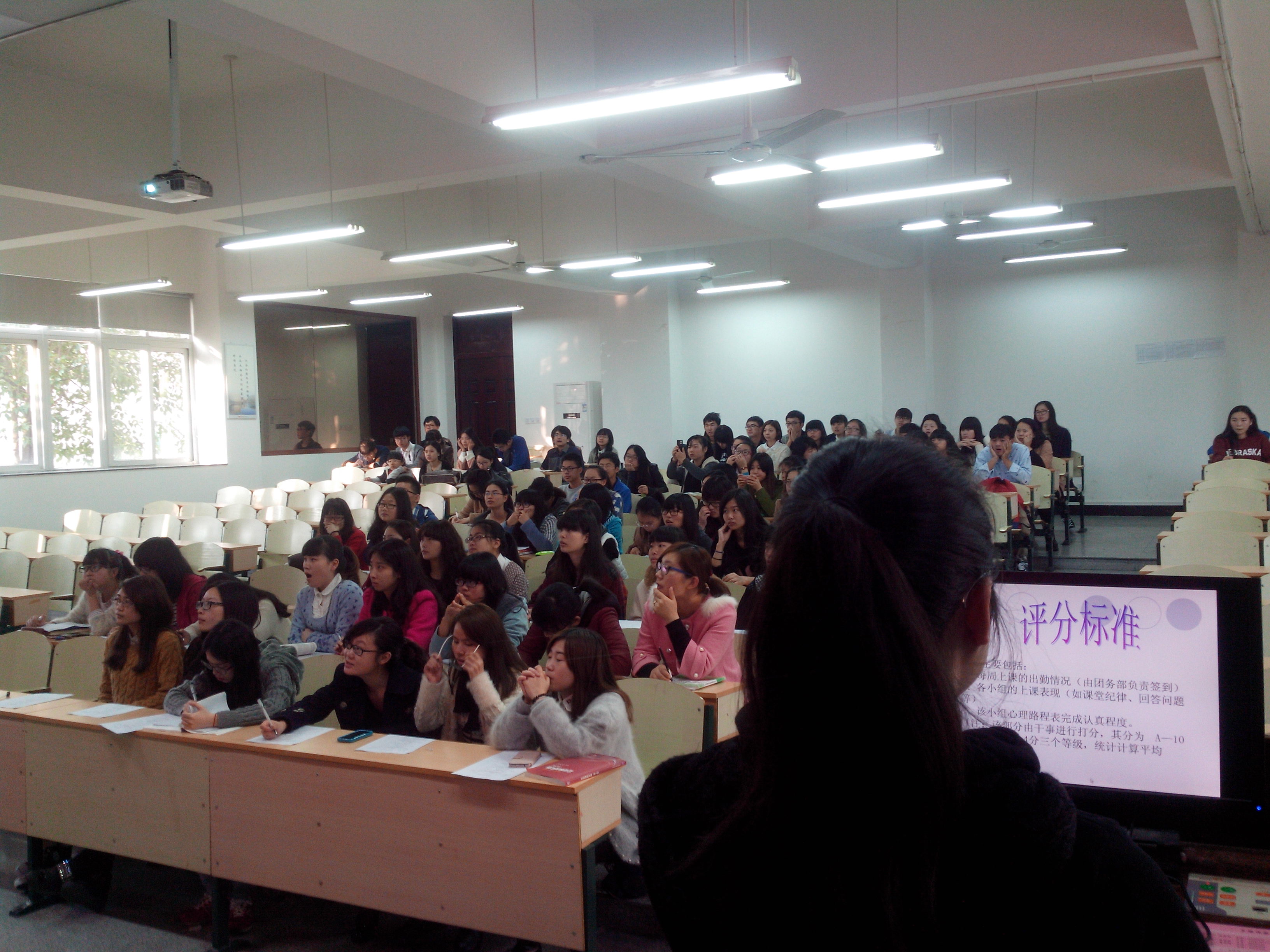 读书会上,主持人首先介绍了此次的读书活动目的、活动形式、分组情况、评分标准等。随后,第一组的学生代表将红色经典和时事政治相结合进行了精彩的讲课。精致的PPT和激动人心的讲解充分体现了当代大学生的精神风貌和时代感。本次红色读书会改变了以往的形式,采用分组讲解,党员做指导,打分,点评,充分发挥了党员同志的带头模范作用,在我系党员三阶段培养工作中做贡献,为学生支部培养出一大批后援队。