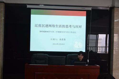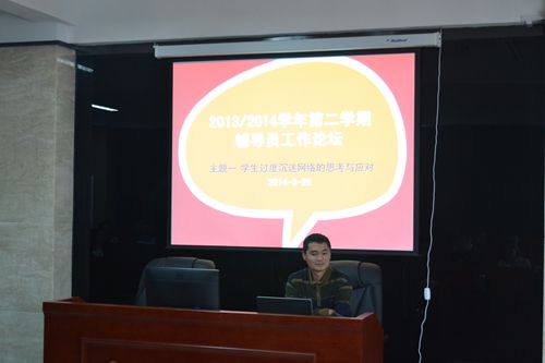 本次论坛以丁金昌院长开学初提出的学生四类问题之一“过度沉迷网络生活”为主题展开,学生处及各系共九名辅导员分别作了主题发言。大家对大学生沉迷网络的原因进行了深入的剖析,同时结合学院及各系特点,提出了相应的对策和建议。随后,在场辅导员针对论坛主题开展了现场讨论,就概念界定、人群筛选、解决措施等方面各抒己见,并提出了针对学生“过度沉迷网络生活”的现象,首先应引导学生健康上网,合理利用网络资源;其次,全院上下要齐抓共管,为学生营造积极向上的校园文化氛围。