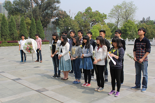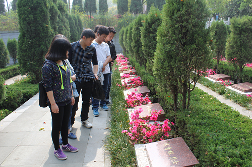 “青山绿水长留身前浩气,苍松翠绿柏椹慰逝后英灵” 初到,同学们眼神肃穆地凝视着烈士纪念碑。随后由主持人带领大家站队悼念仪式。大家在烈士纪念碑前低头默哀1分钟并三鞠躬,寄托对烈士的哀思。在为烈士们敬上装载着崇敬之意的花圈之后,同学们致悼词来表达心中那份对先烈的沉重情感,以示对先烈们的缅怀和敬意。悼墓结束,同学们自由参观陵园。其中有一位小烈士让大家印象深刻,她年仅八岁,因为救掉落水中的孩子而身亡。事后她母亲为她写了首《鹧鸪天》。整首词满是对爱女的怀念之情,让人心中不禁一阵酸楚。同学们自发为她三鞠躬。