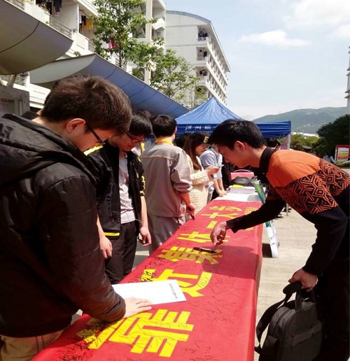 活动现场,同学们积极参与,在横幅上签上自己的名字,以此响应学院“远离网络一小步 靠近集体一大步”、“每月一日 远离网络”的号召,除现场签名、发放倡议书外,我院还将结合教师走访寝室,关于网络使用情况进行调研,了解学生对网络生活的看法及现状。
