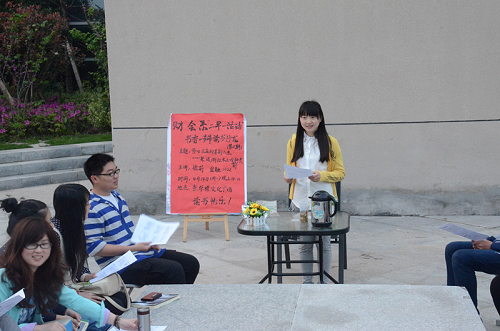 为了丰富学生的课余生活、提升学生的阅读兴趣,4月14日晚18时,财会系书香读书会在崇学楼小广场举行第六期书香一瓣读书沙龙。本次主讲嘉宾为金融1302徐莉同学,题目为“莎士比亚的戏剧人生——兼谈浙江本土戏剧种类”, 18位学生聆听了讲座。财会系党总支书记谢肖力、建工系党总支书记苏跃飞、系学工办主任马德龙、辅导员程红波也到了现场。