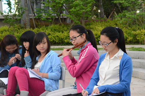 沙龙开始,徐莉同学首先简要介绍了莎士比亚的戏剧作品,表示之所以选择《仲夏夜之梦》这部戏剧,一是切合这个季节,二是这部作品能够反映莎翁的创作才华;为了使讲解更加生动,现场安排了两位同学以男女主角的身份进行精彩对白;活动中间,潘洁和徐莉同学分别为大家吹奏了《梁祝》和《画心》;最后,大家一起谈论了浙江的本土喜剧。整场沙龙,香茗、书评、笛音、辩声融合在一起,好不热闹。最后,程红波老师为本次沙龙做了简单点评,希望大家注重对经典书籍的阅读,提升自己的非专业能力和素养,成长为一名有趣味、有涵养的知识青年。