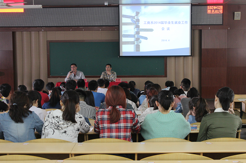 4月17日下午,工商管理系在善学楼101召开“2014届毕业生就业工作会议”。工商管理系书记李建中、学工办主任林香港、14届毕业班全体班主任、学工办辅导员及全体14届在校毕业生参加了本次会议。