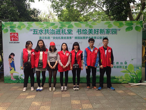 为了团结辖区各方力量,提高居民的水环保意识,鹿城区滨江街道于4月29日上午在绿园社区文化礼堂开展的“五水共治进礼堂 书绘美好新家园”护水使者公益活动。工商系志愿者代表队参加了本次活动。