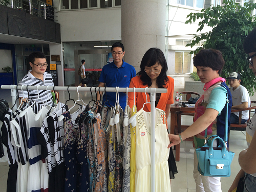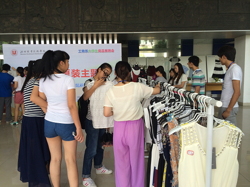 6月11日下午,“携手四季青,靓丽这个夏天”校园O2O服装展销会在图书馆二楼火爆登场。
