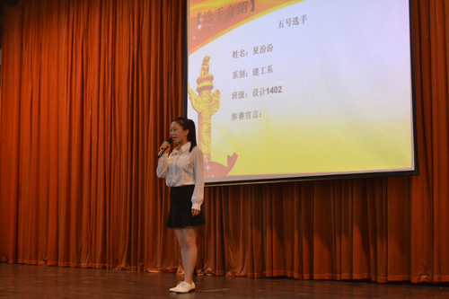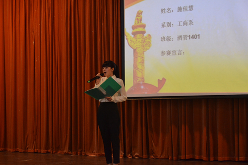 在全场观众齐唱的国歌声中,演讲比赛正式拉开序幕。第一轮主题演讲环节,选手们用饱满的精神状态和慷慨激昂的语言,表达自己对祖国的热爱以及对社会主义核心价值观的解读。第二轮即兴演讲环节,考验的则是选手的临场应变能力和语言组织能力。经过激烈角逐,工商系叶英章荣获一等奖,建筑工程系夏汾汾获二等奖,信息技术系郑双双获三等奖。