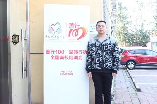 10月6日至8日,建工系志愿者张旗旗同学参加由中国扶贫基金会主办的“2014善行100·爱心包裹”高校培训会,来自全国29个省64个城市的107所高校公益社团负责人齐聚北京,参加为期两天的培训,培训会主要让高校社团负责人掌握“善行100爱心包裹”项目开展要点、操作方法、项目内容及劝募技巧,推广“小包裹,大爱心”人人可公益的公益理念和公益习惯。
