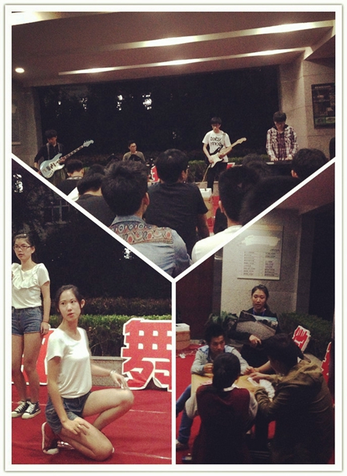 本次活动激情洋溢、形式多样,在木石乐队带来的《亡灵序曲》开场下,现场的气氛瞬间活跃起来,还吸引了许多过往师生驻足观看。声乐队新鲜血液章王蕾演唱的《练习题》引发尖叫如潮;话剧队带来的话剧表演《无人倾听》引人深思;主持队新成员夏芬芬、王金浩带来的《梦想现实》等节目也获得了热烈的掌声,其中器乐队新成员杨旻昊表演的架子鼓《失宠》获得了现场观众的一致好评,成为本次活动最为瞩目的节目之一。