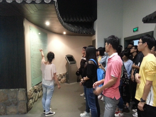温州民俗博物馆是温州市政府与温州大学联合创办的一所市级专业性博物馆,博物馆收藏了温州各地区的各种民俗文物。随着博物馆讲解员的讲解,给同学们带来了既熟悉又陌生的感觉。在颊缬、米塑展示窗口,很多同学都是第一次看到极具温州民间特色的传统技艺;在浙南民居仿古建筑前,大家了解到传统瓯越建筑的独特魅力;民俗博物馆中还为同学们展示了温州传统刺绣——瓯绣的不同绣法以及每个绣法的不同特点。