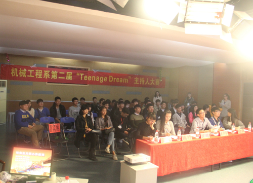 为弘扬校园文化,丰富校园生活,提高学生语言表达与应变能力,选拔优秀主持人才,机械工程系文艺部特意举办了第二届“Teenage Dream”主持人大赛。2014年11月20日晚,在经历了激烈的海选而选拔出来的16名参赛选手正在人文演播厅前严阵以待。