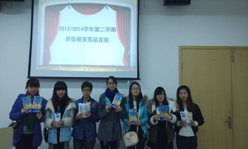 12月9日下午,学院在大学生活动中心举行2013/2014学年第二学期“星级寝室”颁奖仪式。仪式简短而隆重,同学们队列整齐,精神饱满,从老师手中领取了奖品。共有91个五星级寝室,146个四星级寝室和322个三星级寝室获奖。
