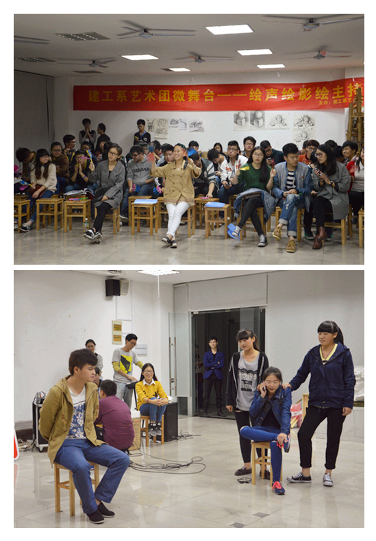 11月中旬,经过紧张的筹备,由建工系艺术团举办的“绘声绘影绘主持”微舞台表演活动在温职院敏行楼324正式开始。