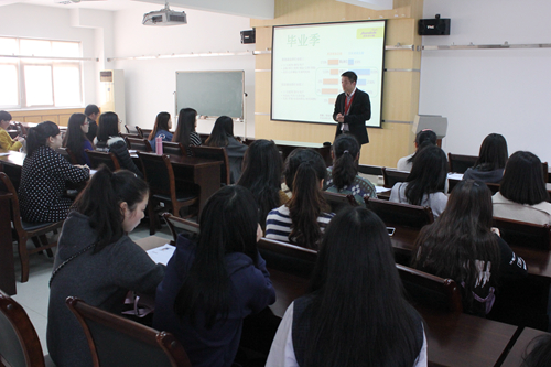3月18日下午,我院在正德楼招聘大厅举办浙江森马服饰股份有限公司专场招聘宣讲会。森马集团人力资源部陈春林向来自财会、工商、人文、时尚和信息等五个系42名到场的2015届毕业生,介绍了企业基本情况和招聘岗位情况。