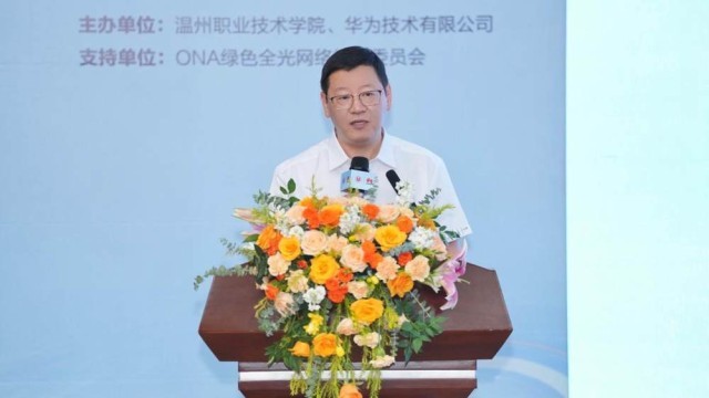 温州职业技术学院校长、党委副书记郑信军在致辞中表示,温职院是浙南闽北地区唯一两轮入选“中国特色高水平高职学校”建设单位的院校,人工智能学院师资力量雄厚,多次获国家级、省级教师教学能力比赛荣誉;科研成果丰硕,完成国家级、省级项目数十项,近 5 年授权发明专利47项;产教融合紧密,与50余家单位合作,引入资金超1500万,培训超4万人次;育人成效显著,获国家及省教学成果一等奖,学生斩获各级竞赛奖项数百项,特别是近3年获华为ICT大赛实践赛高职组全球二等奖1项、三等奖2项、全国一等奖2项,全国二等奖6项。华为深耕ICT领域,始终以技术创新赋能教育发展,与温职院十余年合作硕果累累,从课程共建到光网络学院、F5G全光实训室共建,实现合作质的飞跃,联合培育的300余名人才已崭露头角。教育数字化是时代必然,期待与华为持续深化合作,共推技术融入教学、联合科研攻关、共建开放生态,助力培养数字工匠,赋能区域数字经济,为教育强国建设贡献力量。