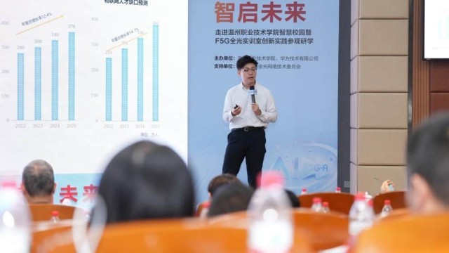 [中国,温州,2025年9月26日] 由温州职业技术学院(简称 “温职院”)、华为技术有限公司联合主办的“走进温州职业技术学院智慧校园暨 F5G-A 万兆全光网创新实践参观研学”活动成功举办。活动聚焦F5G 全光网技术应用与产教融合,吸引教育信息化领域80余位专家学者与行业代表齐聚温职院,共探F5G全光实训室创新实践路径,见证“华为光网络产教融合实践中心”“ONA绿色全光网络技术委员会理事单位”双牌落地,标志着温职院在光网络产教融合与智慧校园建设领域迈出了坚实且具有示范意义的一步,为职业教育数字化转型与校企协同育人提供了可借鉴的实践样本。
