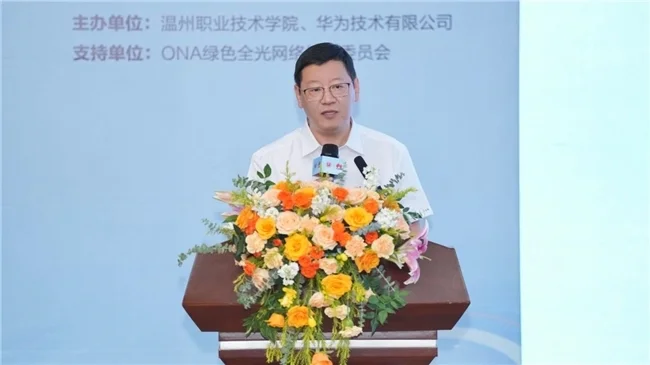 温州职业技术学院校长、党委副书记郑信军在致辞中表示,温职院是浙南闽北地区唯一两轮入选“中国特色高水平高职学校”建设单位的院校,人工智能学院师资力量雄厚,多次获国家级、省级教师教学能力比赛荣誉;科研成果丰硕,完成国家级、省级项目数十项,近 5 年授权发明专利47项;产教融合紧密,与50余家单位合作,引入资金超1500万,培训超4万人次;育人成效显著,获国家及省教学成果一等奖,学生斩获各级竞赛奖项数百项,特别是近3年获华为ICT大赛实践赛高职组全球二等奖1项、三等奖2项、全国一等奖2项,全国二等奖6项。华为深耕ICT领域,始终以技术创新赋能教育发展,与温职院十余年合作硕果累累,从课程共建到光网络学院、F5G全光实训室共建,实现合作质的飞跃,联合培育的300余名人才已崭露头角。教育数字化是时代必然,期待与华为持续深化合作,共推技术融入教学、联合科研攻关、共建开放生态,助力培养数字工匠,赋能区域数字经济,为教育强国建设贡献力量。