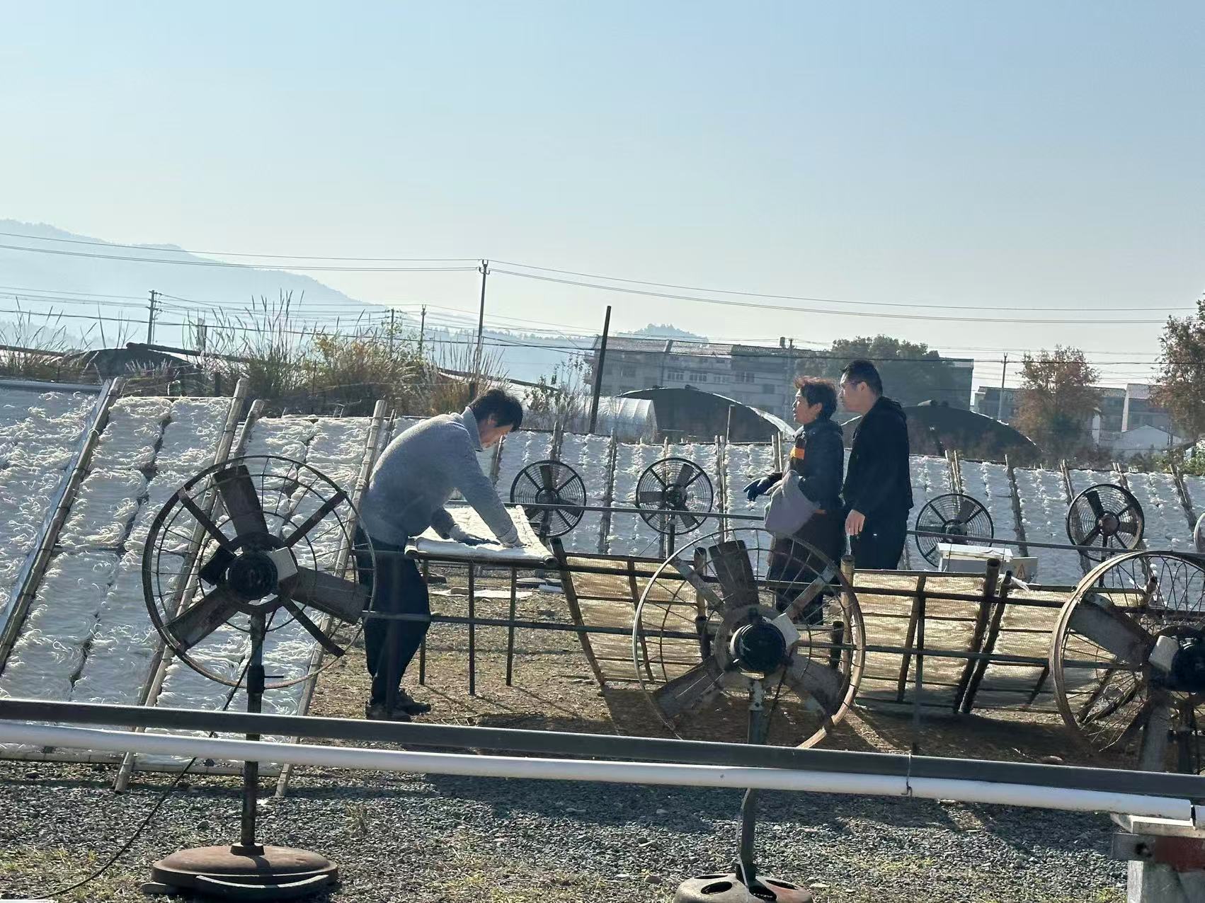 晾晒场上,细如丝线的粉干在阳光下泛着光泽,驻村文化特派员夏志良与工人们交流着煮粉、晾晒的窍门,心中盘算的却是如何用AI技术为这门老手艺注入新灵魂。“煮也要煮好,晒也要晒好,每一部分都不简单,哪一步弄得不好,粉干就不好吃。”老师傅的感慨,被他郑重地记入调研笔记。