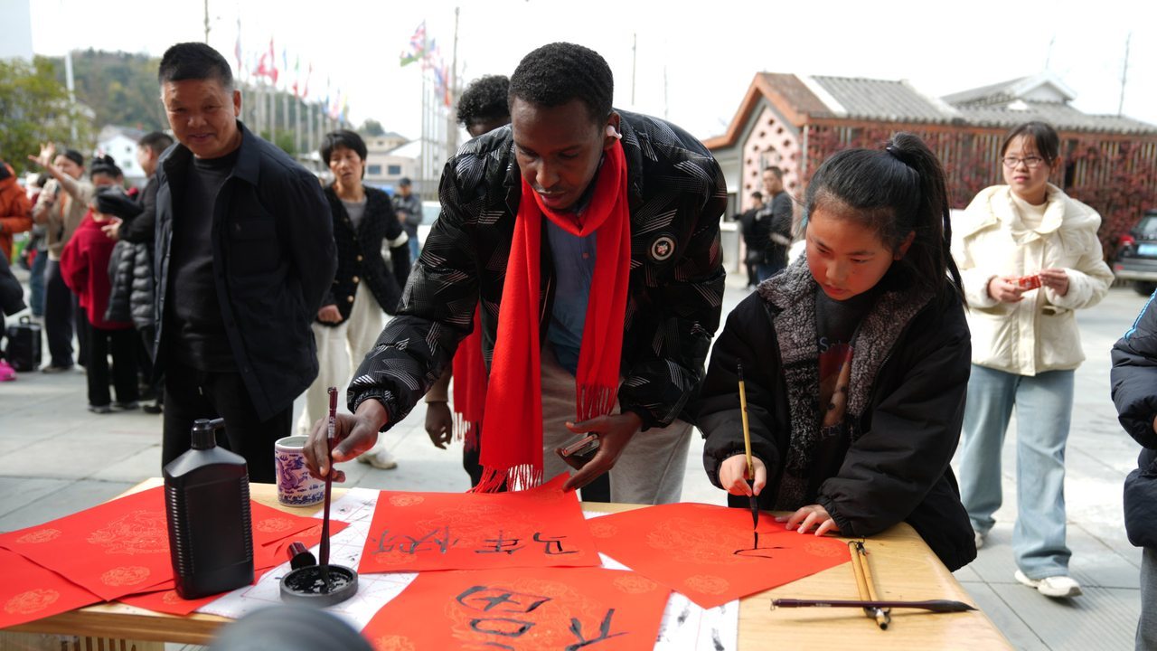在“不驿乐乎”研学基地,他们第一次拿起毛笔,认认真真地写下“福”字。虽然汉语才学了几个月,握笔的姿势还有些笨拙,但每一笔都格外用心。写完后,他们高高举起自己的作品,对着镜头笑得格外灿烂。