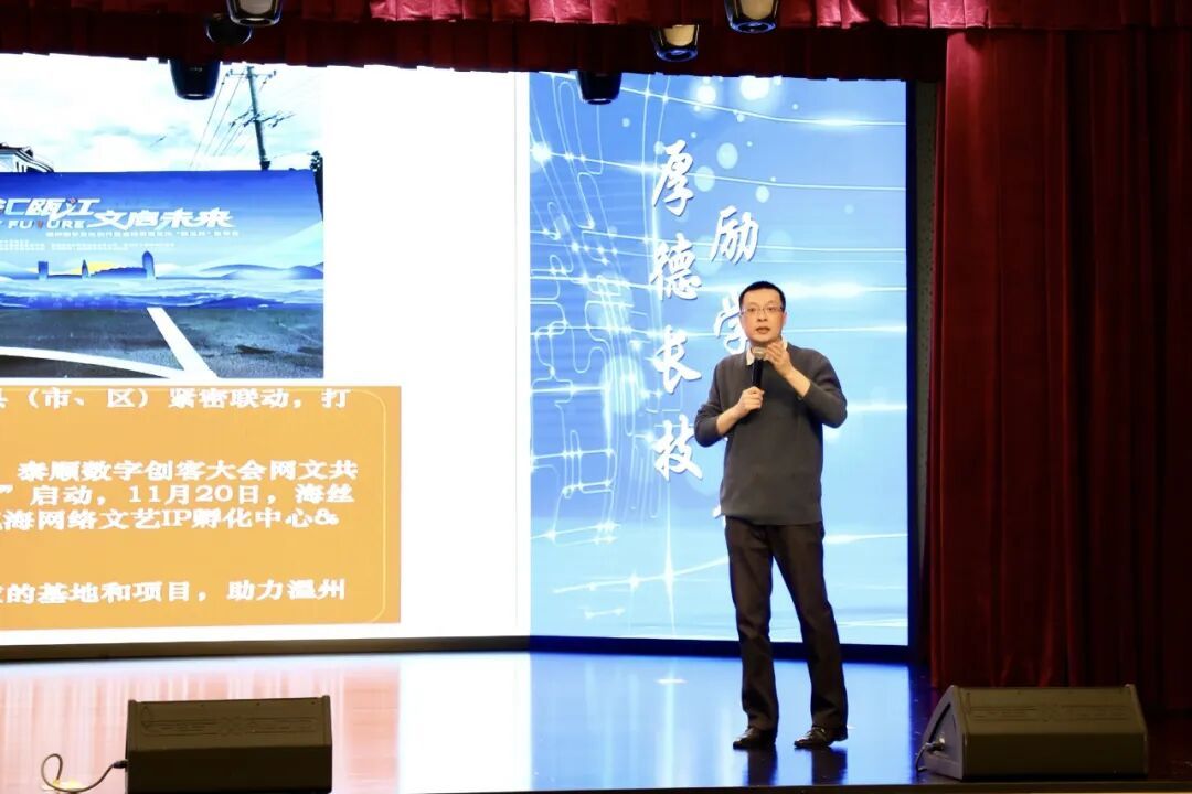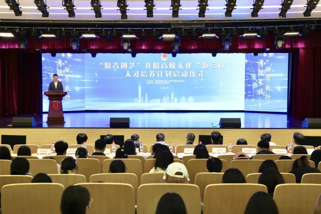 4月1日下午,由共青团温州市委、温州市网络作家协会主办的“温青创艺”在温高校文化“新三样”人才培养计划启动仪式在温州职业技术学院举行。共青团温州市委书记谷川、副书记王晨之,温州职业技术学院党委委员、宣传部部长童卫军,文化“新三样”产业优秀企业家,各在温高校团委负责人及师生代表共400余人参加启动仪式。