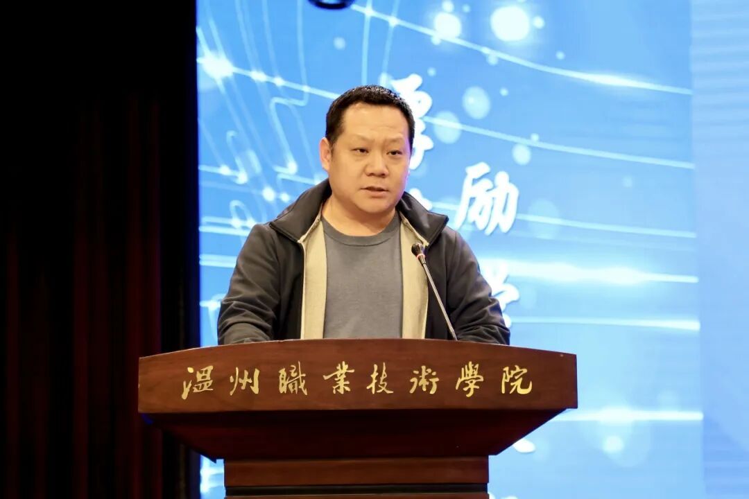 童卫军在致辞中对到场嘉宾表示热烈欢迎,并阐述了学校在文化育人与产教融合方面的实践成果。他表示,“温青创艺”计划植根温州文化沃土、紧扣产业需求,学校将以此次培养计划为契机,着力为青年学子搭建“以艺赋能、以创立业”的平台,让青年学子的创意活力成为文化“新三样”发展的核心动能。